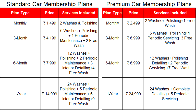 [table “” not found /] Garajexo Regular Service Membership Plan Service Standard Premium Market Price Exterior Wash ₹499 ₹799 ₹399 Interior Cleaning ₹799 ₹1,199 ₹999 Polishing & Detailing ₹1,499 ₹2,499 ₹1,999 Periodic Maintenance ₹2,499 ₹3,999 ₹4,999